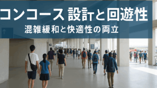 京都サンガ コンコース設計と回遊性|混雑緩和と快適性の両立 スタジアムや大型施設において、コンコース(通路空間)の設計は、観客の動線や快適性に直結する重要な要素です。特に近年では、混雑緩和と回遊性の両立が求められ、設計者には高度な空間構成力が問われています。本記事では、建築的視点と現地体験を交えなが... 2025.10.18 京都サンガ